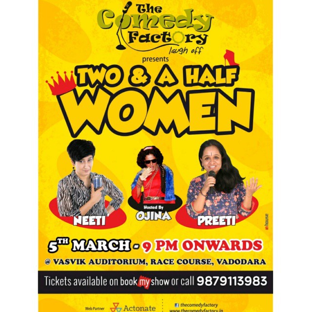 #Vadodara for you we celebrating #Women'sDay on 5th March at Vasvik Auditorium. "Two & a Half Women" by Preeti Das, Neeti Palta from Delhi and Ojina...