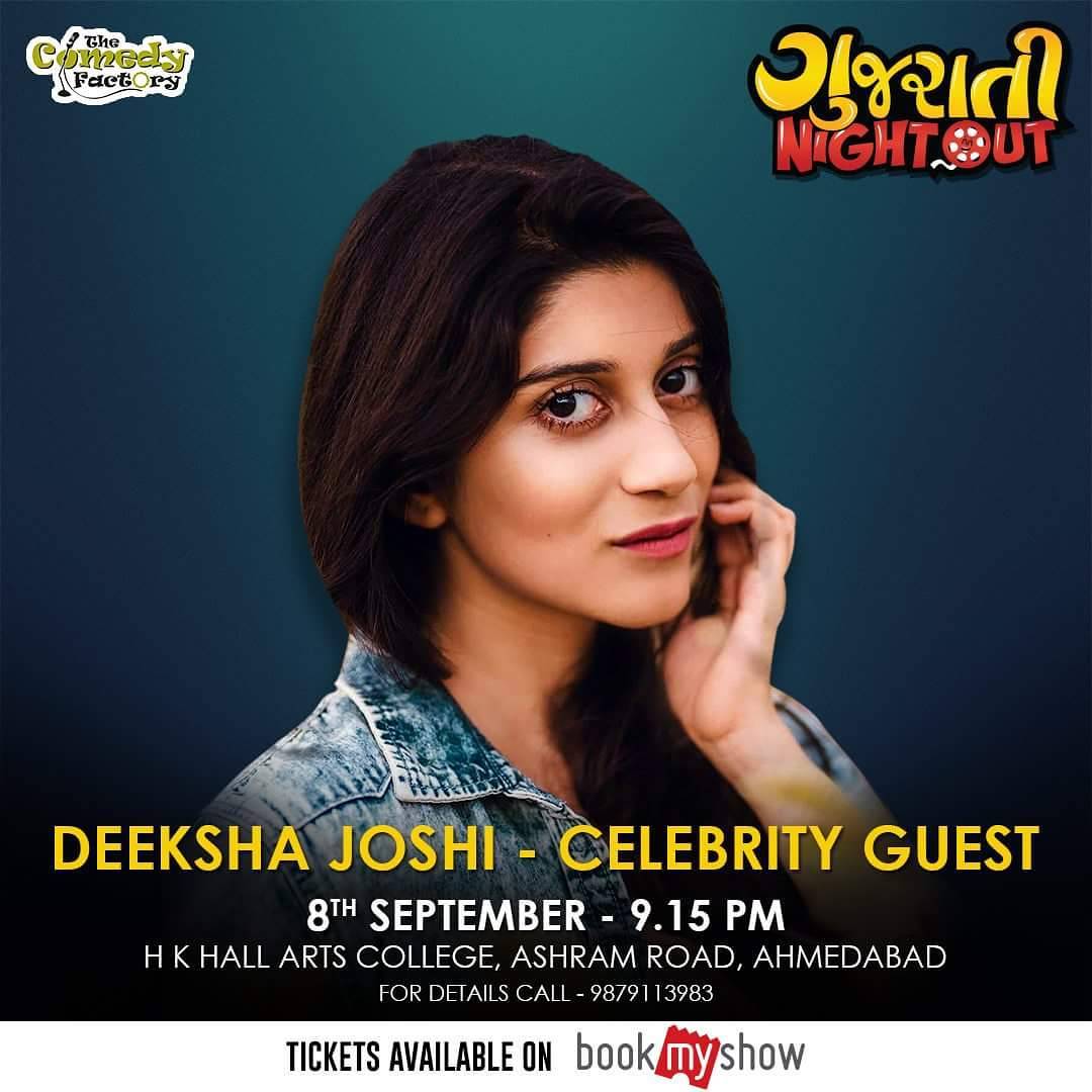 Celebrity guest for Gujarati Night Out @deekshajoshi04π! Gujarati Night Out is a one of its kind live show where Gujarati Cinema meets Gujarati..