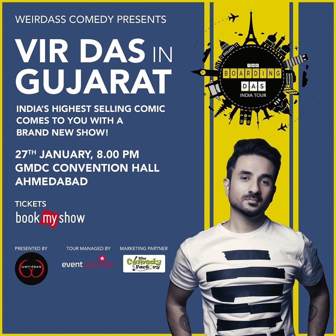 >>> TICKET LINK IN BIO <<< . @virdas is coming to Ahmedabad tomorrow with his show "The Boarding Das". LAST FEW TICKETS LEFT! Book your tickets..