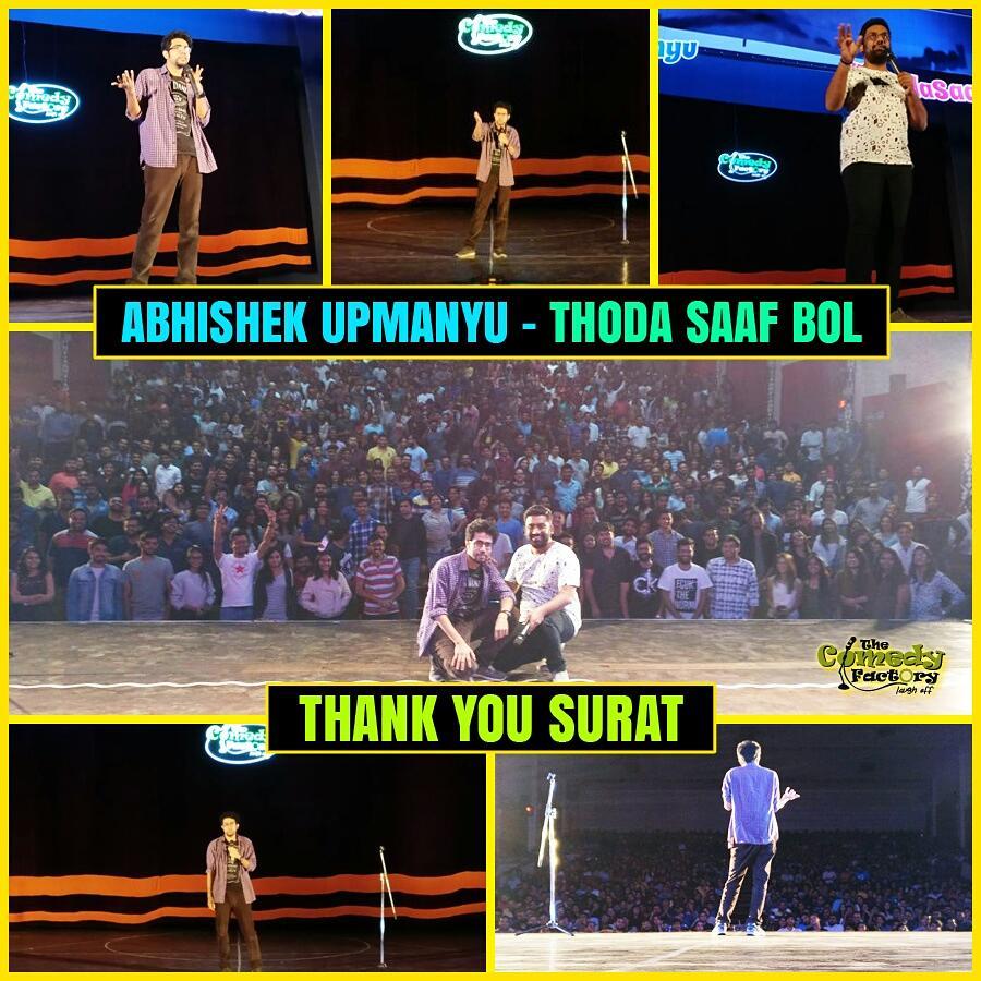 Small highlight of @aupmanyu's "Thoda Saaf Bol" show in Surat. It was one hell of a laughter riot! It was a SOLD OUT show. Thank you SURAT for being..