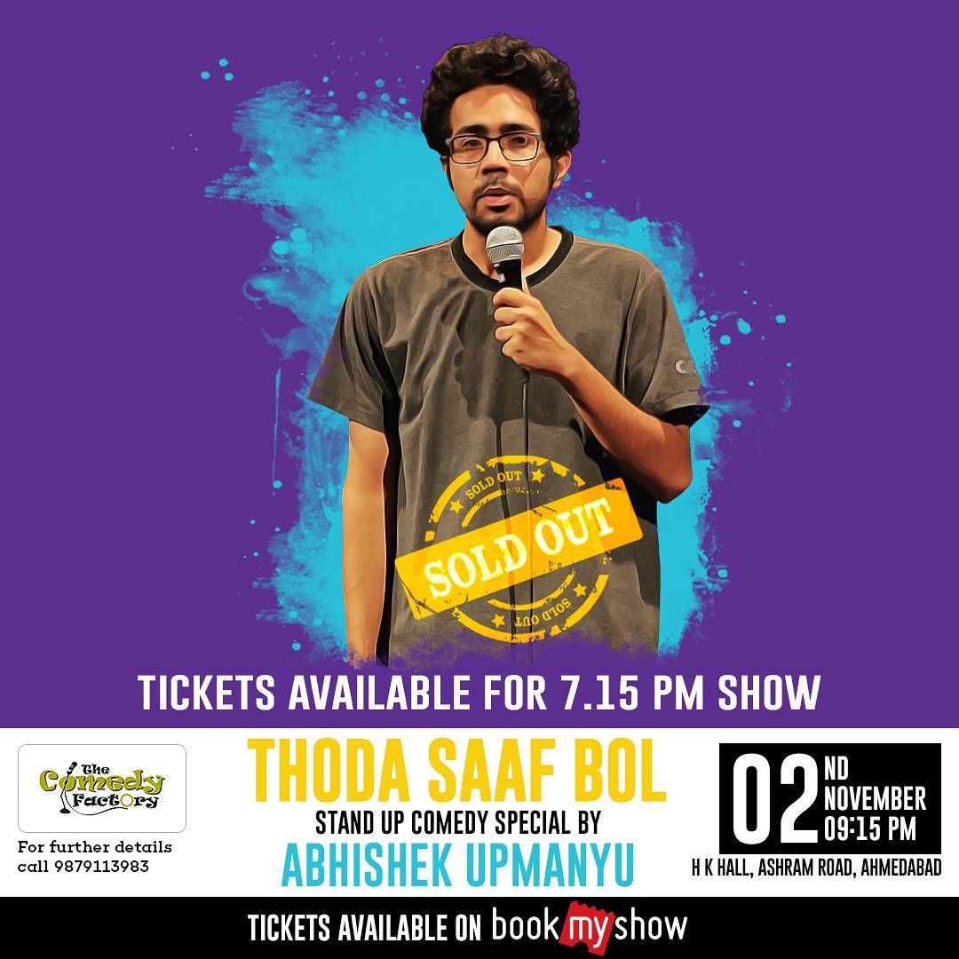 >>> TICKET LINK FOR 7:15 PM AHMEDABAD SHOW IN BIO <<< . Stand up Comedy Special by @aupmanyu "Thoda Saaf Bol" 9:15 pm Ahmedabad show is SOLD OUT π..