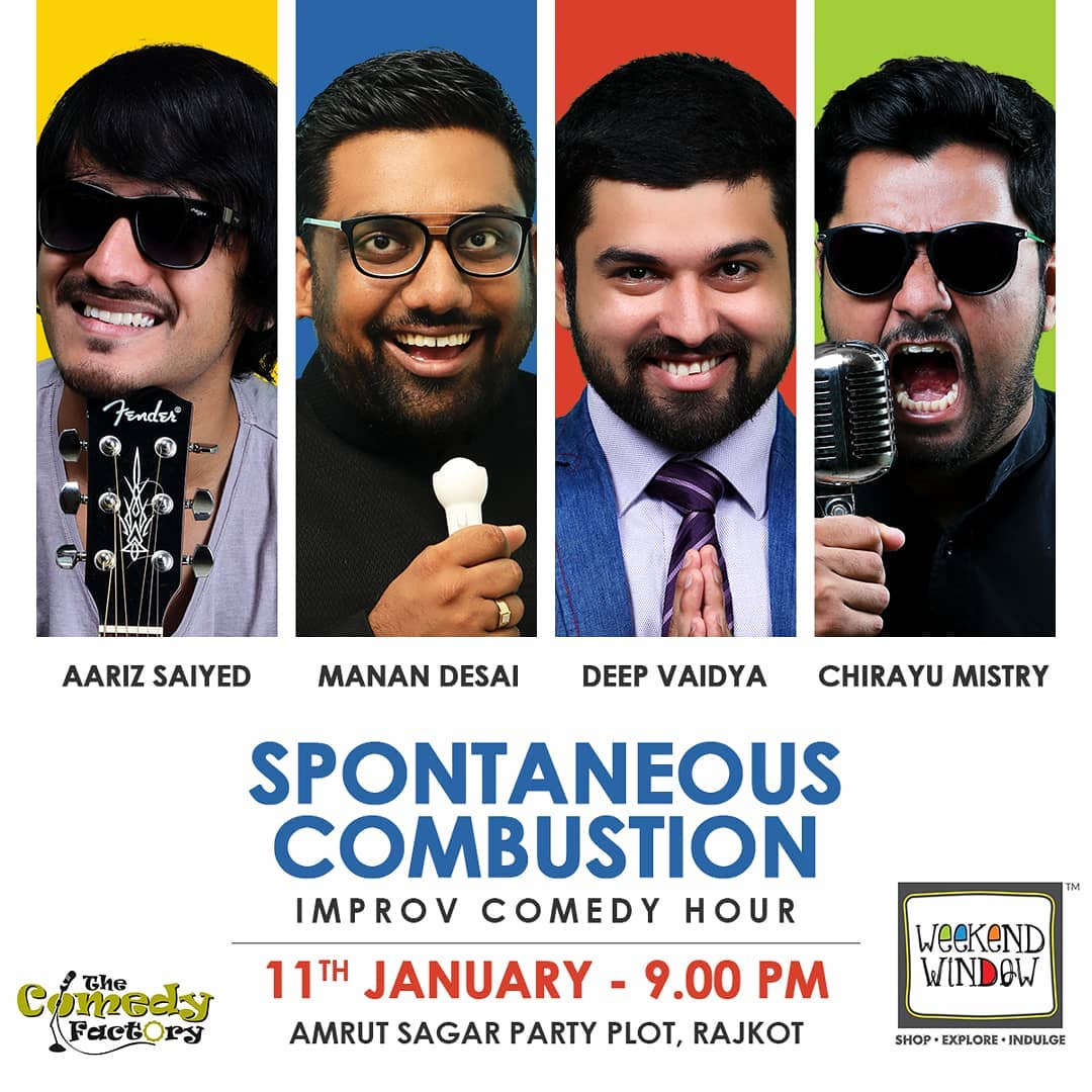 The Comedy Factory artists Manan Desai, Chirayu Mistry, Aariz Saiyed & Deep Vaidya will be performing Improv Comedy i.e. on the spot and unrehearsed..