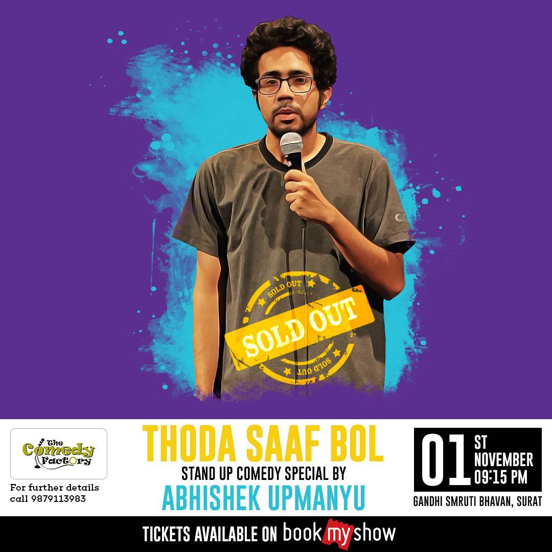 Stand up Comedy Special by @aupmanyu "Thoda Saaf Bol" Rajkot show's tickets are getting sold really fast. Have you booked yours? If not book your tickets FAST. It is going to be one hell of a laughter riot. π